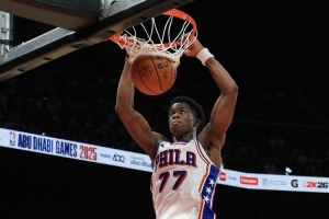 “他很从容,”谈到埃奇库姆出手了两位数的三分球时,马克西说道,“他们有几次试图扑防他,但他还是出手了。我们知道他持球冲击篮下时能做什么,也知道他在防守端能做什么。但那才是我最引以为豪的地方。他投了那些三分球,而且投得充满自信,也投进了。”